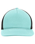 70% cotton, 30% nylon; 5-panel; Front panel lined; Half-moon mesh front panel insert; Semi-curved bill with contrasting rope; Contrasting snapback closure;