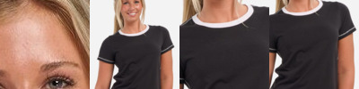- Contrast trim at neck and sleeve hem