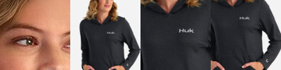 - HUK Fishing branding on left sleeve