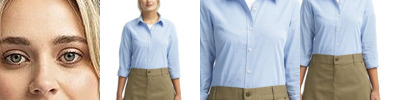 - Contrast stitching along bottom and sleeve hem