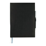 The 7'' x 10'' FSC® Mix Vicenza Large Bound Journal is a pebble-grain, hardcover bound journal containing 96 sheets of FSC® Mix white lined paper to record your notes and ideas. It includes a stretchy elastic pen loop, plus blue and silver ribbon page markers to hold your place with ease. Featuring Italian UltraHyde materials, the cover of this pebble-grain bound journal is both stylish and solidly constructed. Pen not included.