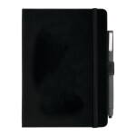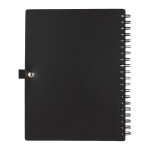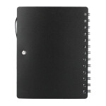 The 5'' x 7'' Recycled Pace Spiral Notebook w Pen features a 100% RPP cover with dual front pockets for storing documents and spiral design. Includes 70 sheets of recycled white lined paper and color matching pen loop. This notebook comes with a 100% RPET color matching pen. Smooth black ink with 800 meters of writing length. Click action design and 1mm tip. Through a partnership with 1% For The Planet, one percent of sales of all EcoSmart® products are donated to environmental nonprofits. Note that pens are packed separately.